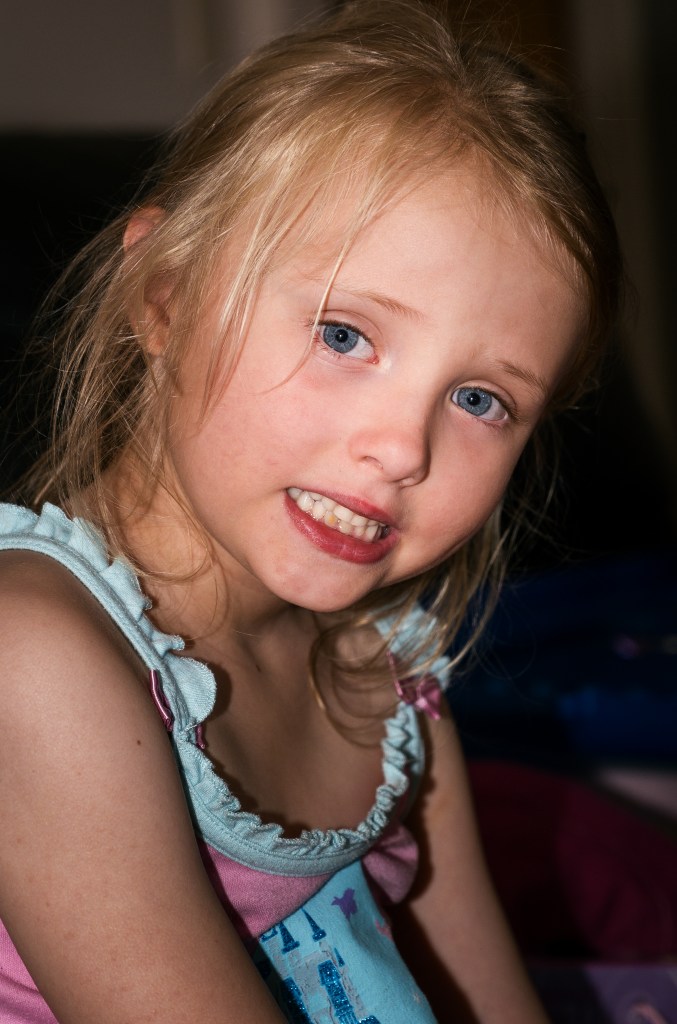 I am practicing my flash photography, and my daughter is practicing smiling …