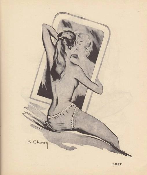 The 7 Deadly Sins: Wrath, Sloth, Lust, Gluttony, Greed, Pride and Envy. Illustrated by Bernard Charoy 1, 1958.